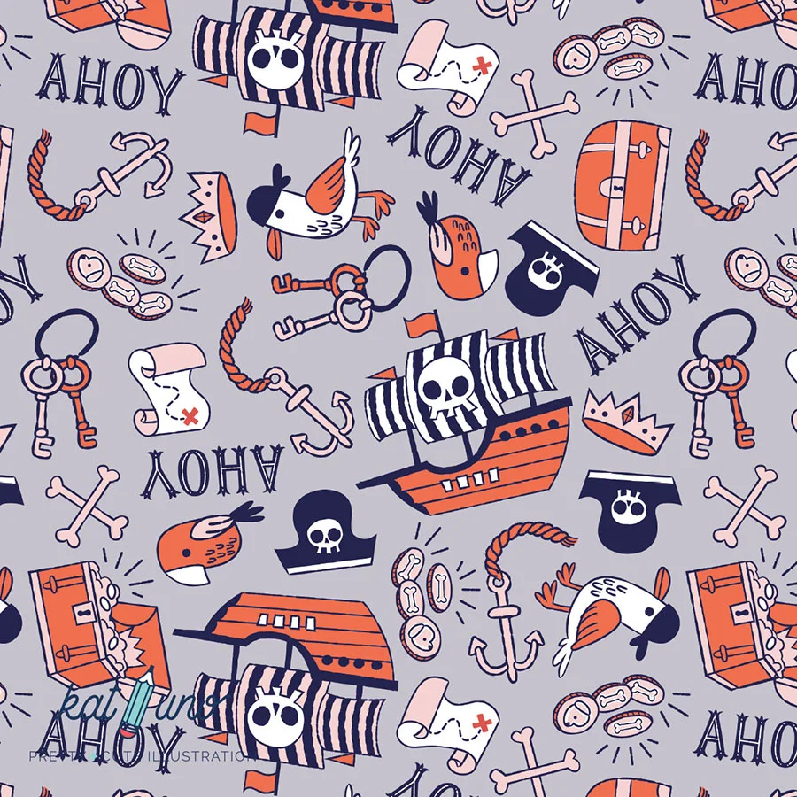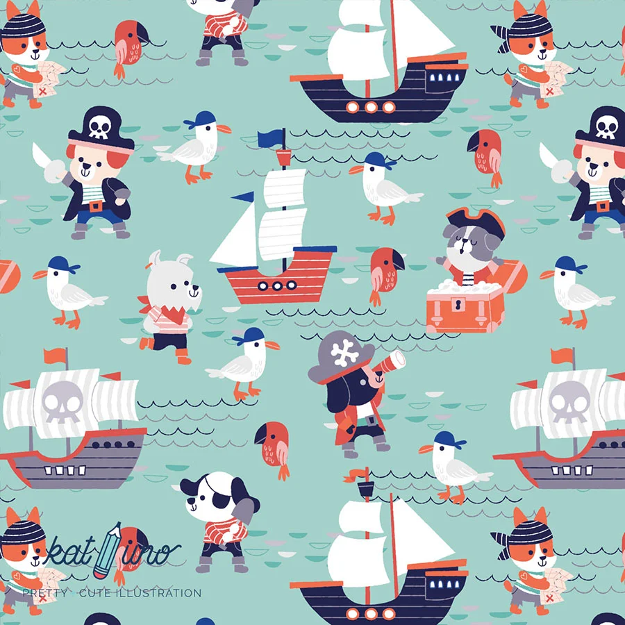 I'd love to share this new collection with you! These are a bunch of fun and cute sea dogs having adventures on the high seas! I started out by sketching out the little guys and then I developed the other elements like the ships and birds.