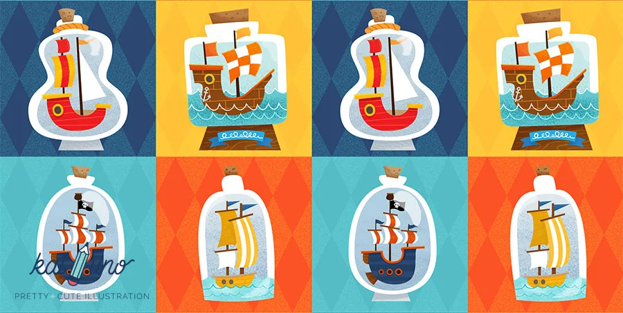 I liked my ships in bottles and whales so much, I created a pattern with them and they are available on my Spoonflower shop.