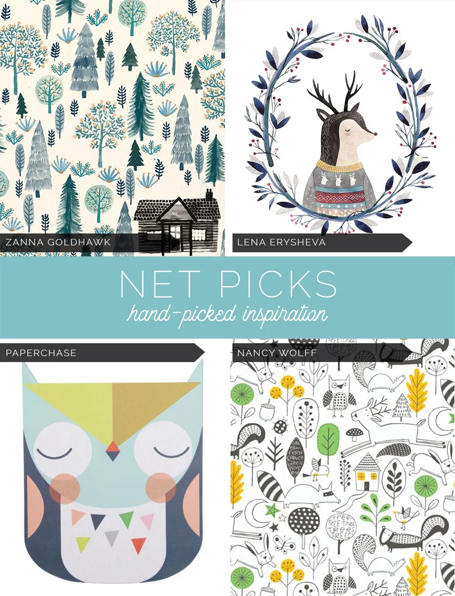 This week's Net Picks focuses on designs for boys. I have been loving the woodland trend that has been pretty popular for a while now! Personally I grew up and have lived in Hawaii my whole life so I have never experienced true forests. We have rain forests here (which I haven't experienced much of either) so the woods and forests with all the wonderful flora and fauna is very foreign and almost fantastical to me.